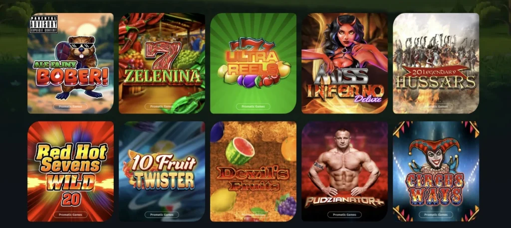V naší nabídce na Bonver Casino najdete širokou paletu slotů od Promatic Games, které kombinují elegantní design s odměňujícími funkcemi, například: