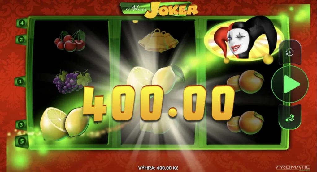 V ovocných slotech, jako je právě Miss Joker, se tento symbol stal ikonou – často stylizovaný jako veselý kašpárek nebo charismatická postava, která dodává hře nádech nostalgie a vzrušení. V naší novince od Promatic je Joker ztvárněn jako okouzlující slečna, která nejen nahrazuje symboly, ale přímo zvyšuje Vaše výhry. Tento motiv spojuje klasickou tradici s moderním designem a dělá z Miss Joker ideální volbu pro milovníky retro stylu.